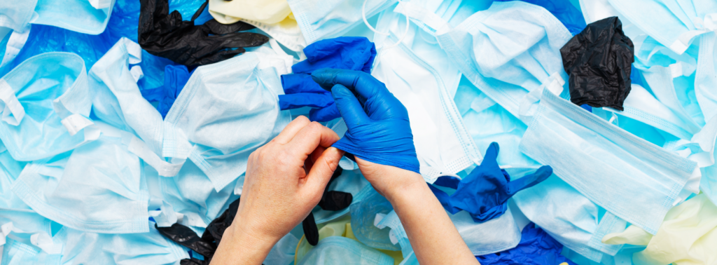 Did you know that Canadian healthcare ranks third in the list of countries worldwide with the highest use of single-use plastics per capita? A significant portion of this waste comes from Personal Protective Equipment (PPE) and in 2020 Health Canada estimated that 63,000,000 kilograms of PPE waste would end up in Canadian landfills every year. It’s such a large amount that this yearly PPE waste could stretch to the moon and back over six times. Truly astounding volumes of waste.